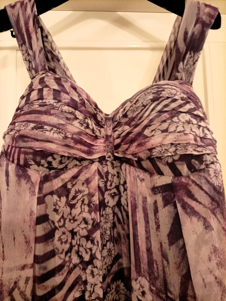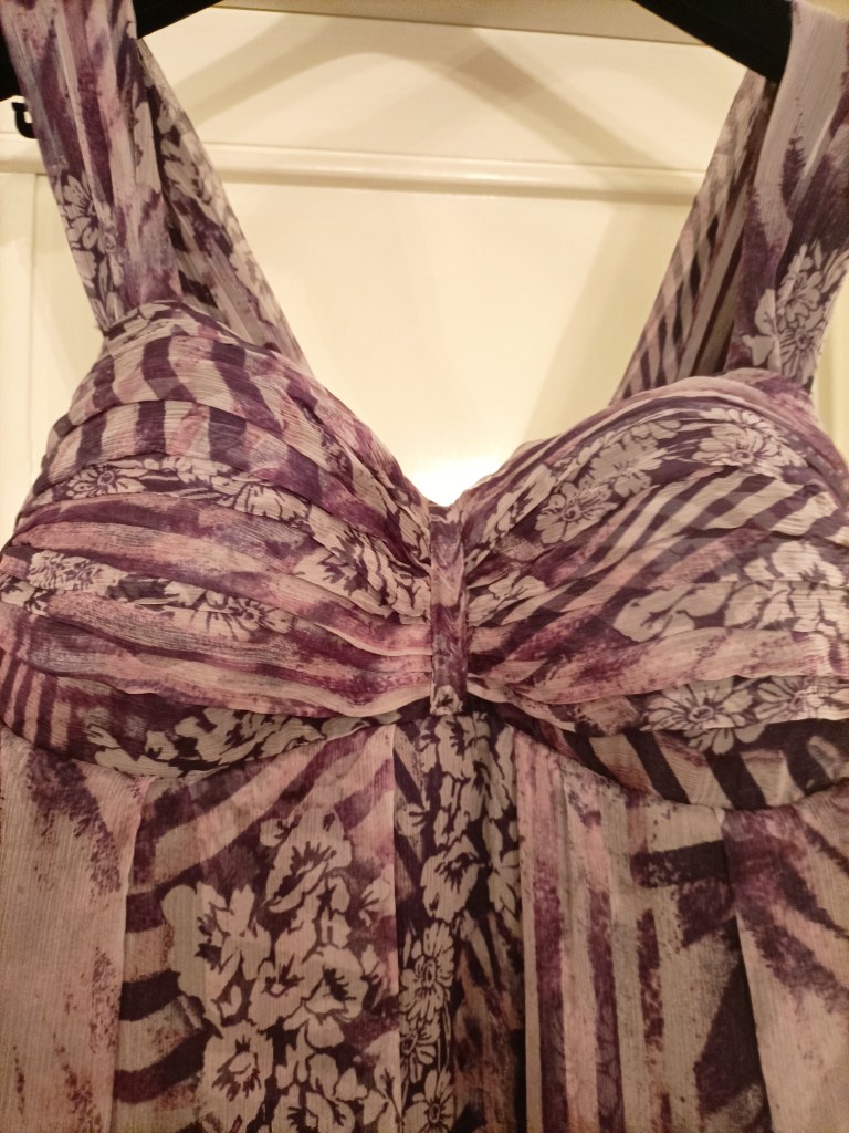 Domani consegno quest’abito per una mia cliente. L’abito è in chiffon di seta pura fantasia servirà per un matrimonio pomeridiano.
