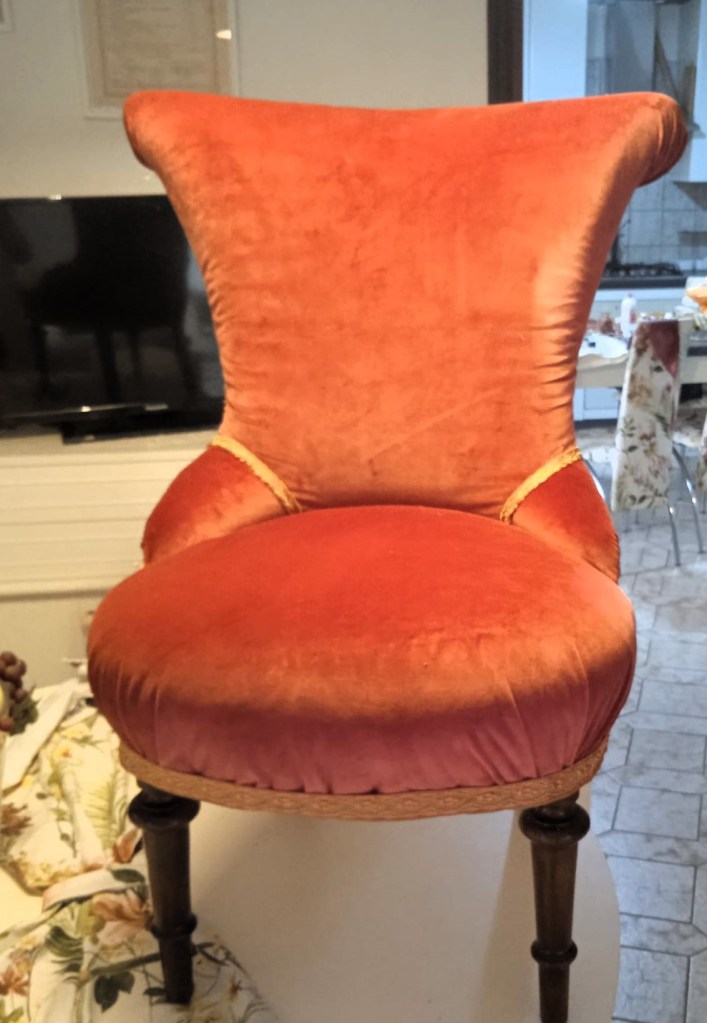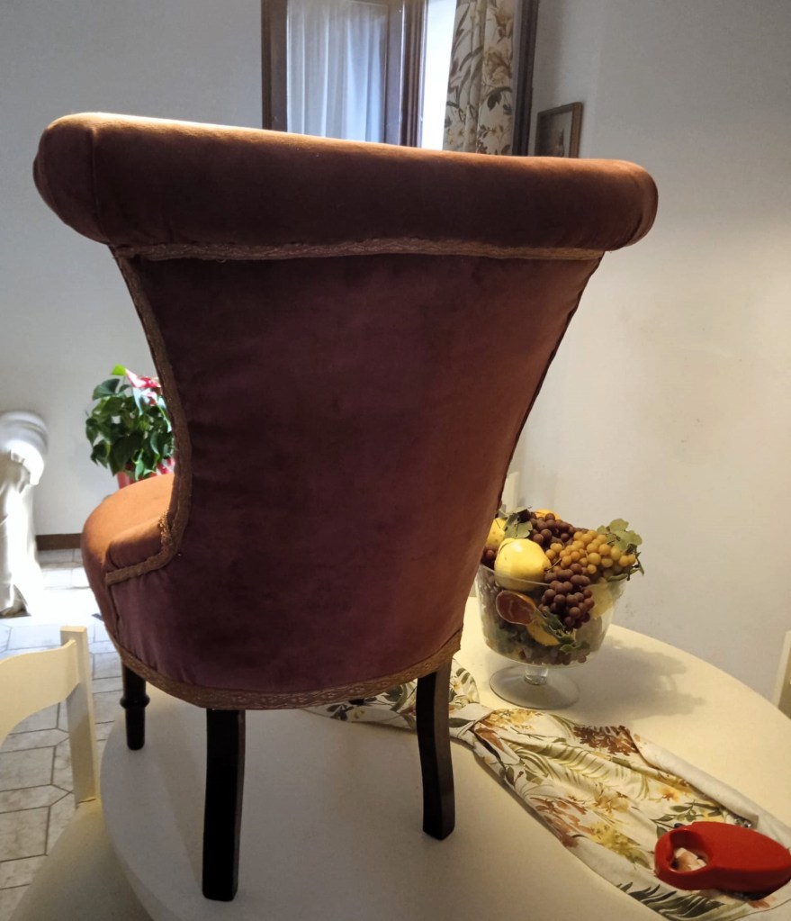 Un’amica aveva due poltroncine molto graziose ma la sua micia aveva distrutto la tappezzeria così mi ha chiesto di rivestirle nuovamente e questo è il risultato.